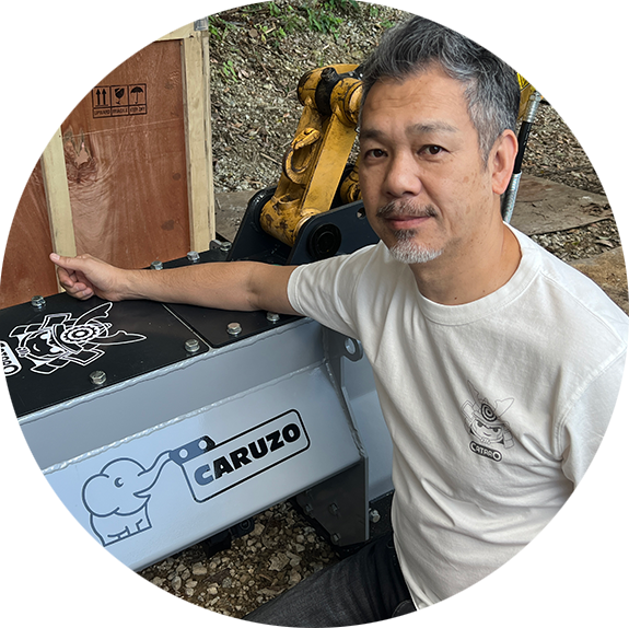 同じ悩みを持つ経営者・個人事業主の方々の力になりたいという一念から、ユンボ用マルチャーと草刈機を自ら開発。